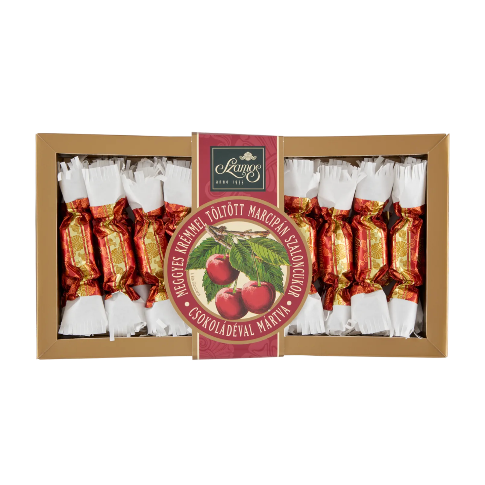 A Szamos Magyarország egyik leghíresebb édességgyára, amely hosszú hagyományokkal rendelkezik a marcipán- és édességgyártásban. A meggyes változat a finom marcipánt a gyümölcsös meggytöltelékkel és a csokoládéval ötvözi, egyedi ízélményt nyújtva és tisztelegve a magyar karácsonyi hagyományok előtt.