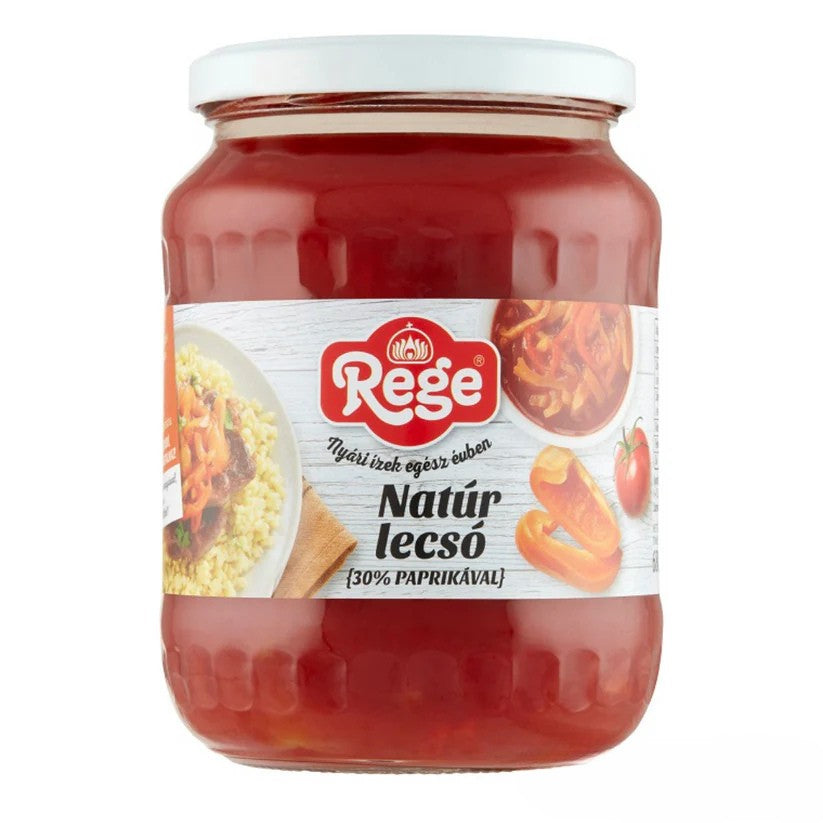 Den ungersk grönsaksgrytan Lecsó glaskonserv är tillagad på tomat, lök och vit ungersk paprika. Grytan kan serveras som tillbehör till exempelvis grillat kött, användas som bas i en gryta eller ätas precis som den är som en fräsch sommarlunch med ett gott surdegsbröd till.